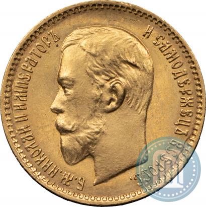 5 roubles 1909 year (ЭБ) . Gold. Edge patterned. Bitkin # 34 (R), Conros # 20/17