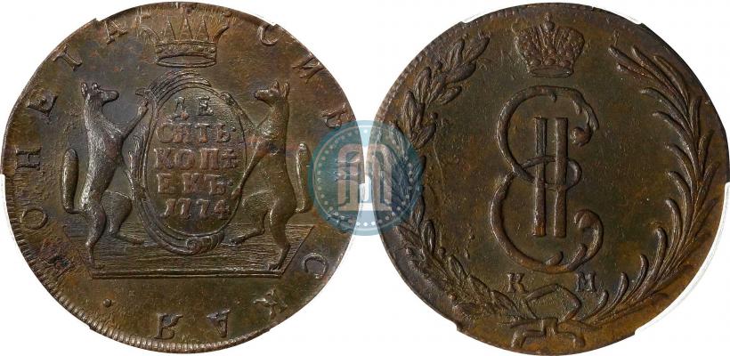 10 kopecks 1774 year КМ . Copper. Edge cordlike leftwards. Petrov - 0,5 rub., Conros # 174/11