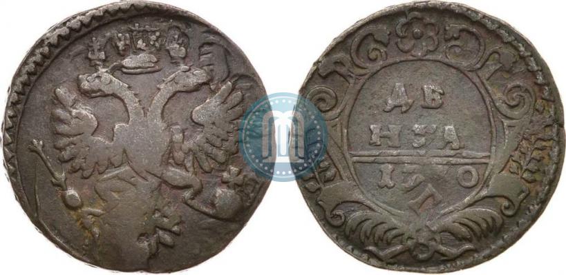 Denga 1730 year . Copper. Edge netlike. Petrov - нет rub., Ilyin - нет rub., Conros # 220/2 220/3