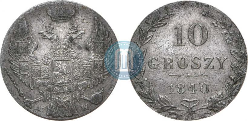 10 groszy 1840 year MW . Silver. Edge plain. Petrov - 10 rub., Conros # 475/8
