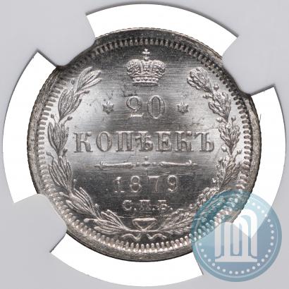 20 kopecks 1879 year СПБ-НФ . Silver. Edge ribbed. Conros # 146/60