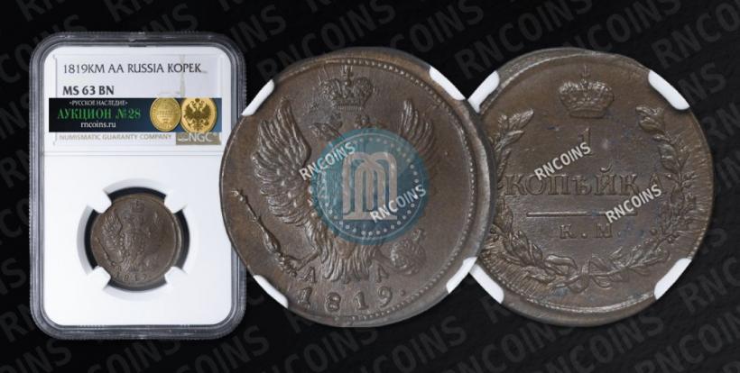 1 kopeck 1819 year КМ-АД . Copper. Edge plain. Conros # 214/46