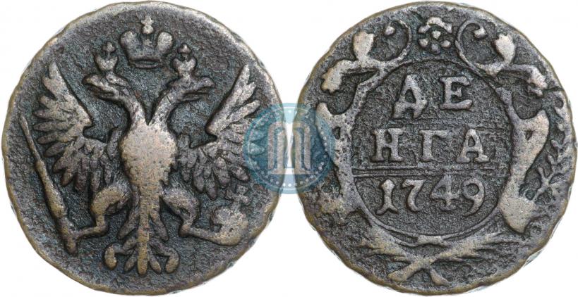 Denga 1749 year . Copper. Edge netlike. Ilyin - нет rub., Conros # 220/31 220/32 220/33