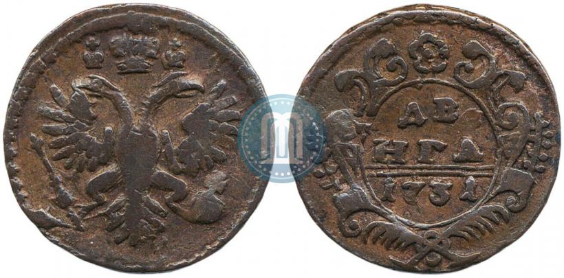Denga 1731 year . Two lines above the date. Copper. Edge netlike. Conros # 220/6