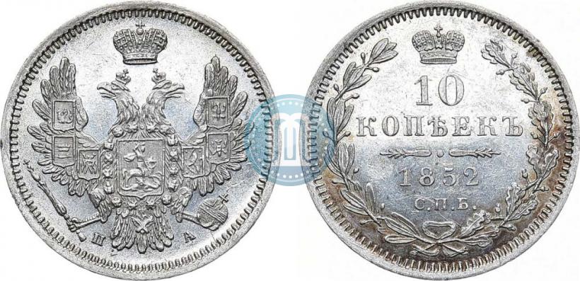 10 kopecks 1852 year СПБ-ПА . Silver. Edge dotted. Conros # 161/54