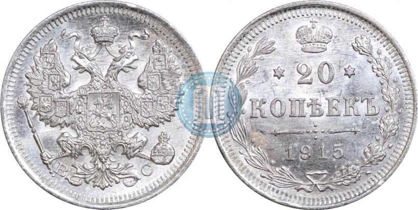 20 kopecks 1915 year ВС . Silver. Edge ribbed. Conros # 146/92