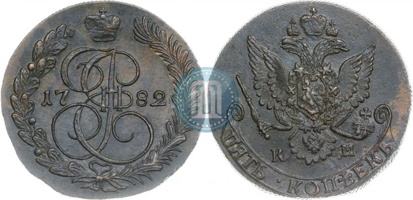 5 kopecks 1782 year КМ . Copper. Edge cordlike leftwards. Petrov - 0,5 rub., Conros # 180/151