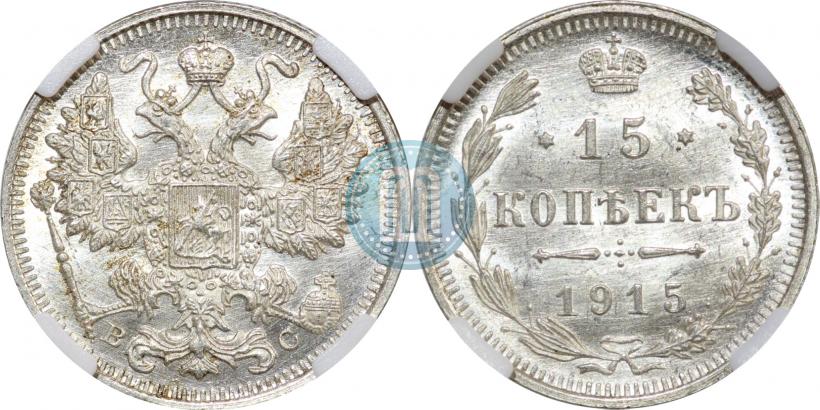 15 kopecks 1915 year ВС . Silver. Edge ribbed. Conros # 149/81