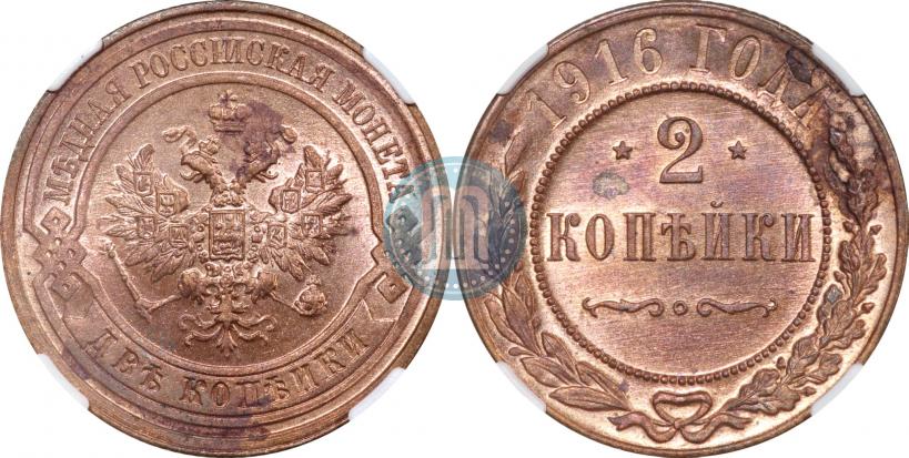 2 kopecks 1916 year . Copper. Edge ribbed. Conros # 202/56