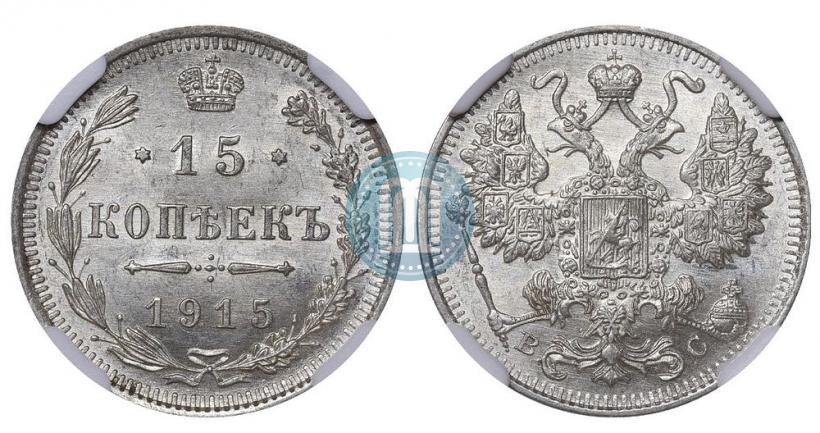 15 kopecks 1915 year ВС . Silver. Edge ribbed. Conros # 149/81