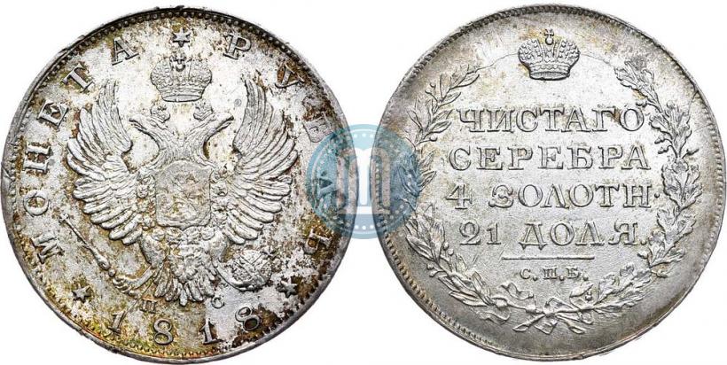 1 rouble 1818 year СПБ-ПС . Eagle of 1814. Silver. Edge inscription. Petrov - нет rub., Ilyin - 5 rub., Conros # 77/19