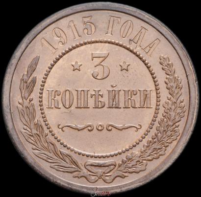 3 kopecks 1915 year . Copper. Edge ribbed. Conros # 190/49