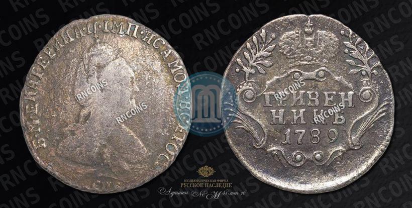Grivennik 1789 year СПБ . Silver. Edge cordlike leftwards. Petrov - 0,75 rub., Conros # 156/16