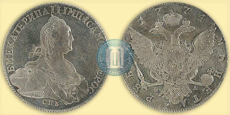 1 rouble 1774 year СПБ-ФЛ . Silver. Edge cordlike leftwards. Petrov - 2,5 rub., Conros # 70/68