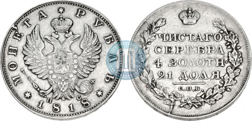 1 rouble 1818 year СПБ-ПС . Eagle of 1814. Silver. Edge inscription. Petrov - нет rub., Ilyin - 5 rub., Conros # 77/19
