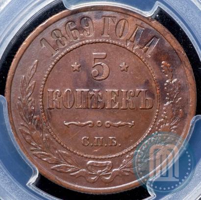 5 kopecks 1869 year СПБ . Copper. Edge ribbed. Conros # 185/5