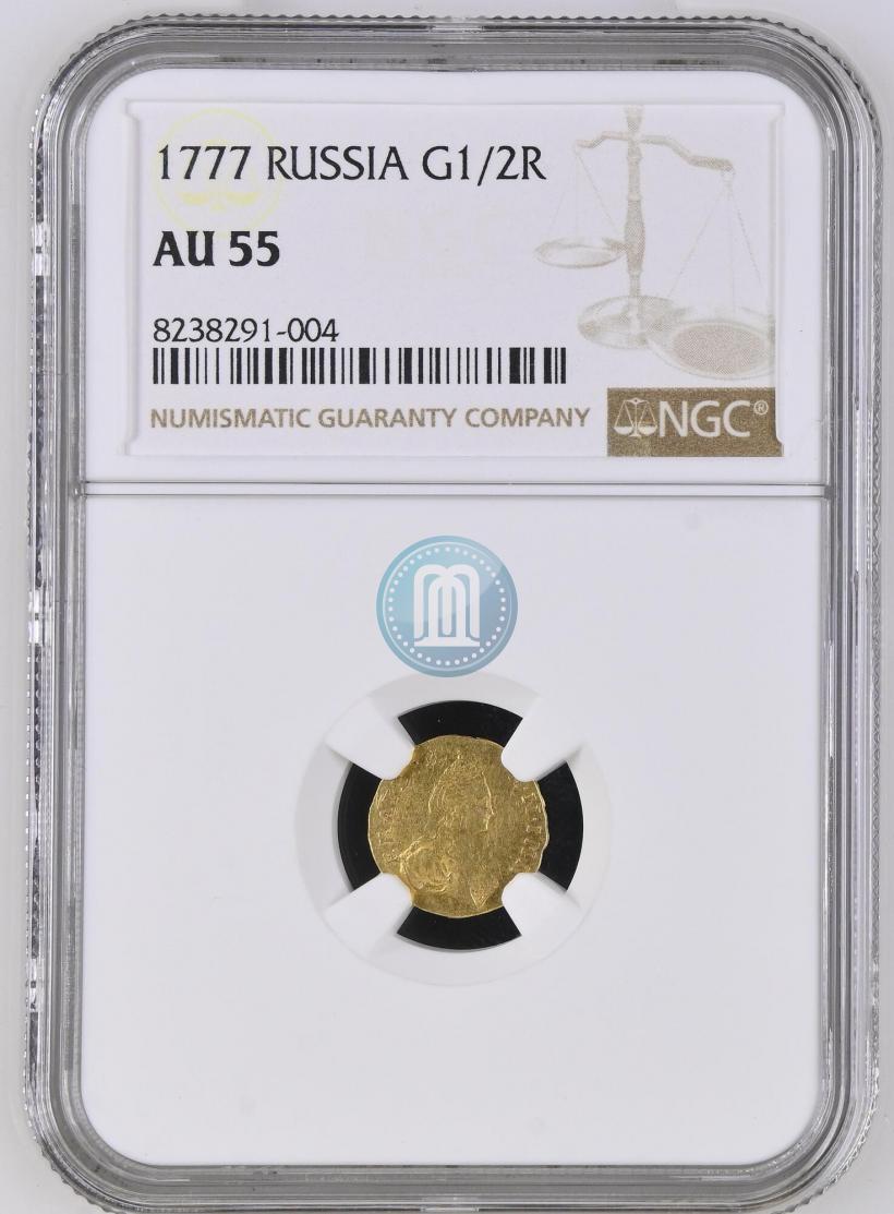 Poltina 1777 year . Gold. Edge plain. Bitkin # 116 (R), Petrov - 2,5 rub., Conros # 34/50