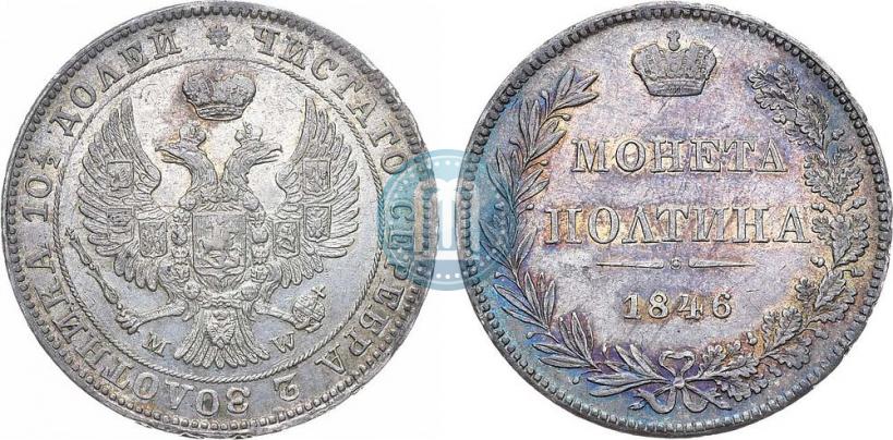 Poltina 1846 year MW . Silver. Edge inscription. Petrov - 1-7 rub., Ilyin - 3 rub., Conros # 118/77 118/78 118/79 118/80 118/81 118/82 118/83 118/84 118/85