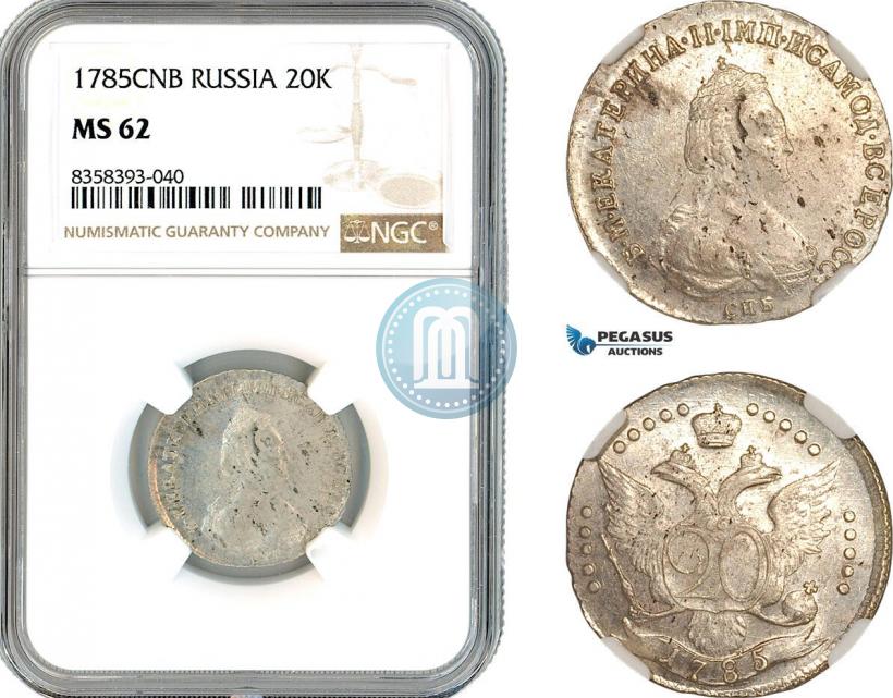 20 kopecks 1785 year СПБ . Silver. Edge cordlike leftwards. Petrov - 1 rub., Conros # 142/12