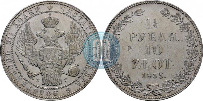 1,5 roubles - 10 złotych 1835 year НГ . Narrow crown. Silver. Edge inscription. Petrov - 2 rub.