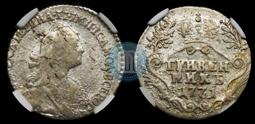 Grivennik 1771 year СПБ . Silver. Edge cordlike leftwards. Petrov - 0,75 rub., Conros # 155/21