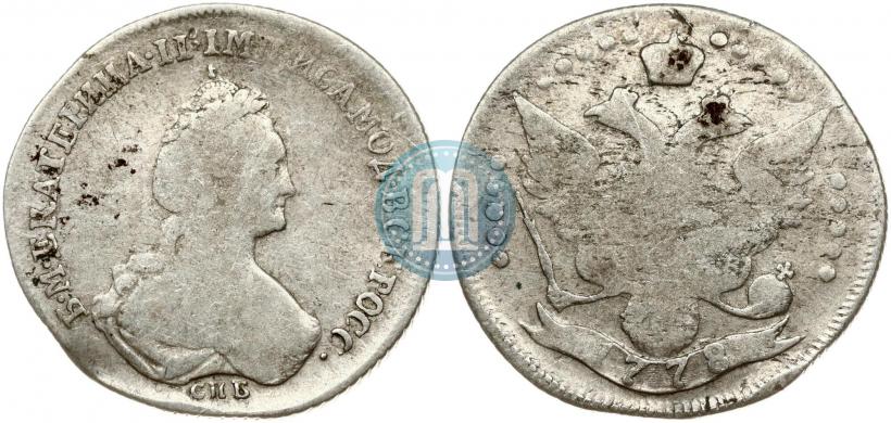 20 kopecks 1778 year СПБ . "ВСЕРОСС". Silver. Edge cordlike leftwards. Petrov - 1 rub., Conros # 142/1