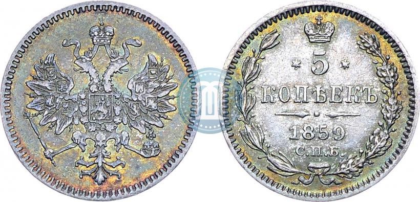 5 kopecks 1859 year СПБ . Silver. Edge dotted. Bitkin # 165 (R2), Petrov - 20 rub., Ilyin - 15 rub., Conros # 170/2