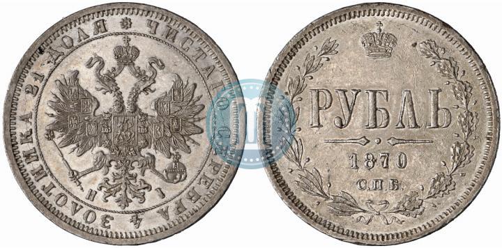 1 rouble 1870 year СПБ-НІ . Silver. Edge inscription. Petrov - 2,25 rub., Conros # 80/14