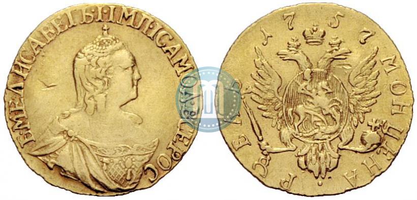 1 rouble 1757 year . Gold. Edge cordlike rightwards. Bitkin # 65 (R1), Petrov - 4 rub., Conros # 34/21