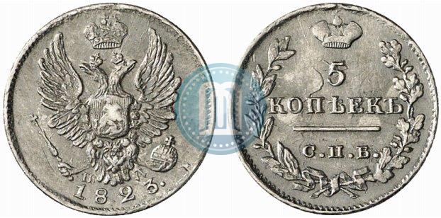 5 kopecks 1823 year СПБ-ПД . Wide crown. Silver. Edge dotted. Petrov - нет rub., Conros # 167/27