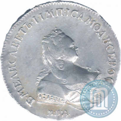 1 rouble 1742 year ММД . Corsage's edge is V-shaped. Silver. Edge inscription. Petrov - нет rub., Ilyin - нет rub., Conros # 65/3 65/4