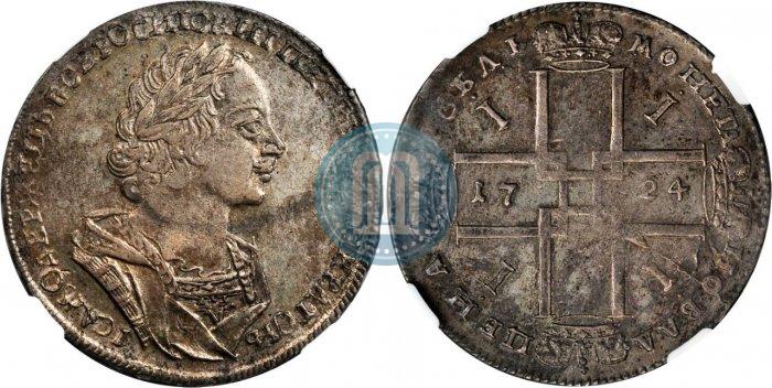 1 rouble 1724 year "Portrait in ancient armour". Silver. Edge inscription.