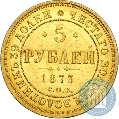 5 roubles 1873 year СПБ-НІ . Gold. Edge dotted. Conros # 18/17