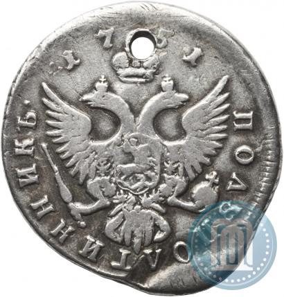 Polupoltinnik 1751 year ММД . Silver. Edge cordlike leftwards. Petrov - 1 rub., Conros # 129/9