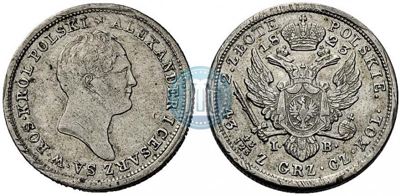 2 złote 1823 year IB . Silver. Edge ribbed. Petrov - 1 rub., Conros # 464/14