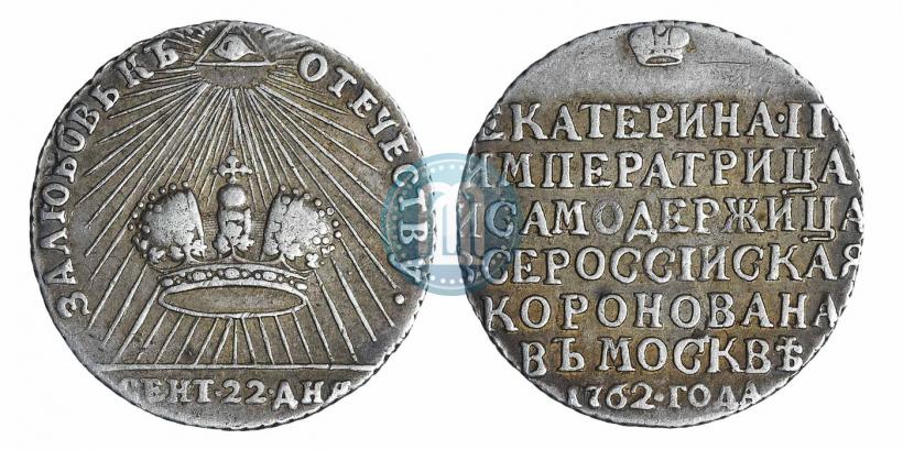 Token Coin 1762 year "Coronation of the Empress Catherine II". Silver. Edge cordlike leftwards. Bitkin # 1357 (R)
