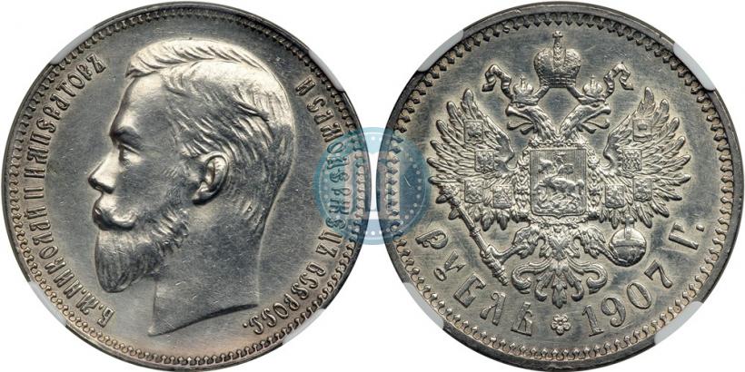 1 rouble 1907 year (ЭБ) . Silver. Edge inscription. Conros # 82/38