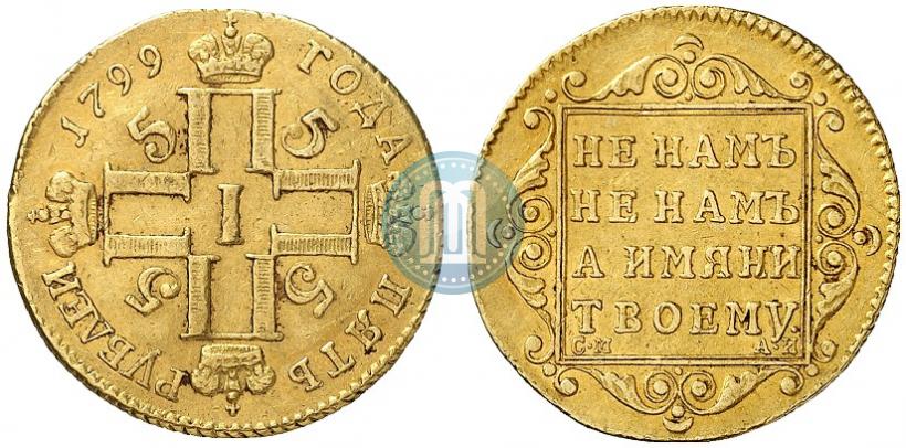 5 roubles 1799 year СМ-АИ . Gold. Edge cordlike rightwards. Bitkin # 4 (R), Petrov - 15 rub., Conros # 14/3