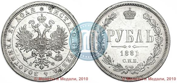 1 rouble 1881 year СПБ-НФ . Silver. Edge inscription. Petrov - 2 rub., Conros # 80/26
