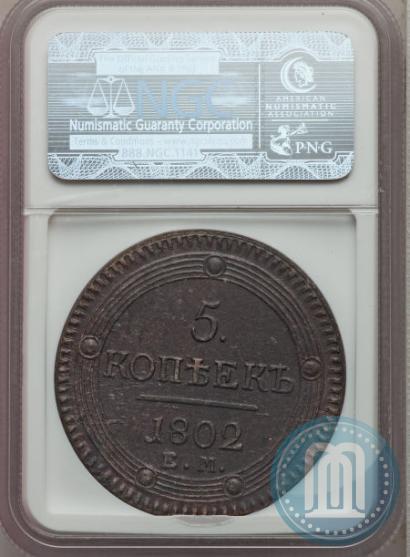 5 kopecks 1802 year ЕМ . Copper. Edge cordlike leftwards. Conros # 182/1