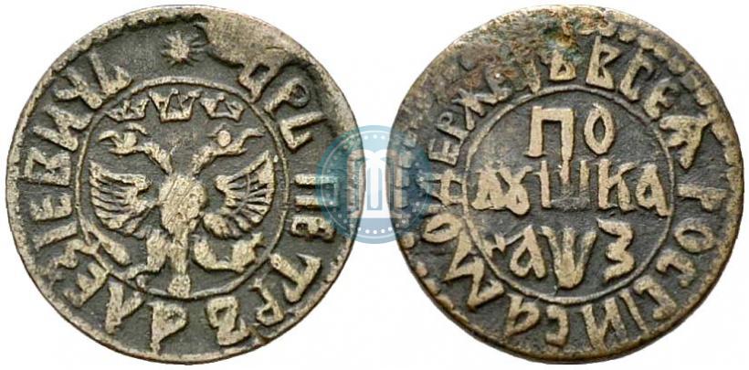 Polushka 1707 year . "ВСЕЯ РОССИИ САМОДЕРЖЕЦЬ". Copper. Edge plain. Bitkin # 2867 (...-R1)