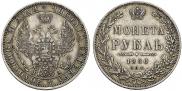 Completed and current offers coin 1 rouble 1850 year СПБ-ПА at numismatic auctions. Silver. St. George without cloak. Large crown on the reverse. Sales are recorded at public numismatic auctions around the world. The sale price is indicated without taking into account the auction commission.