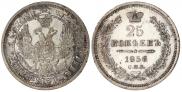 Completed and current offers coin 25 kopecks 1858 year СПБ-ФБ at numismatic auctions. Silver. Sales are recorded at public numismatic auctions around the world. The sale price is indicated without taking into account the auction commission.