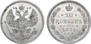 Completed and current offers coin 20 kopecks 1871 year СПБ-HI at numismatic auctions. Silver. Eagle of 1874-1881. Sales are recorded at public numismatic auctions around the world. The sale price is indicated without taking into account the auction commission.